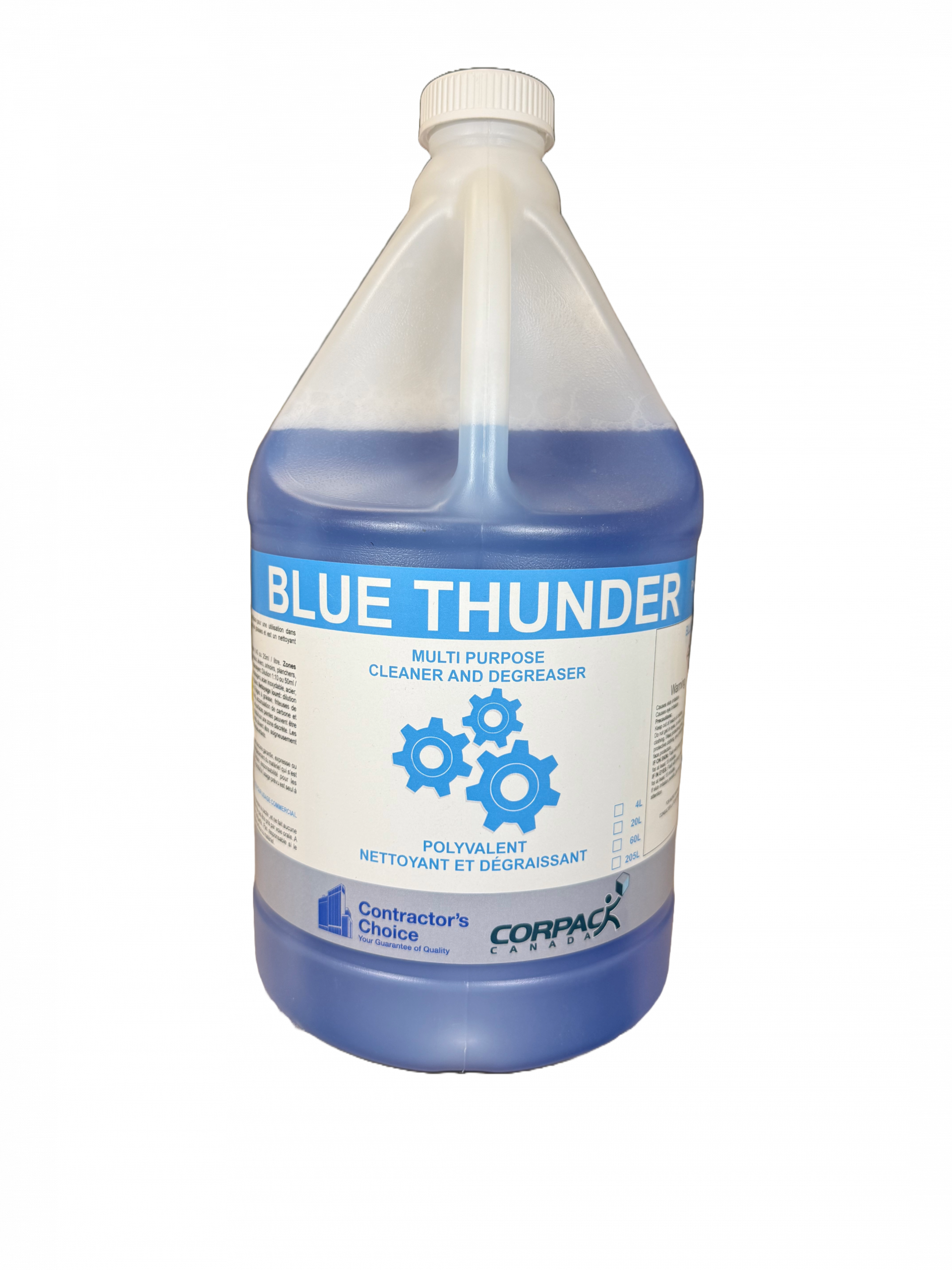 Blue Thunder is a professional-grade heavy-duty cleaner designed to cut through the toughest grease, grime, and industrial soils. Powered by a blend of 2-butoxyethanol, sodium hydroxide, and surfactants, it delivers deep cleaning action that restores heavily soiled surfaces with ease. Its high-alkaline formula is ideal for use in warehouses, workshops, and food processing facilities, breaking down stubborn residues and leaving surfaces thoroughly clean. With its bold blue color and uncompromising strength, Blue Thunder is the go-to solution when ordinary cleaners simply aren’t enough.