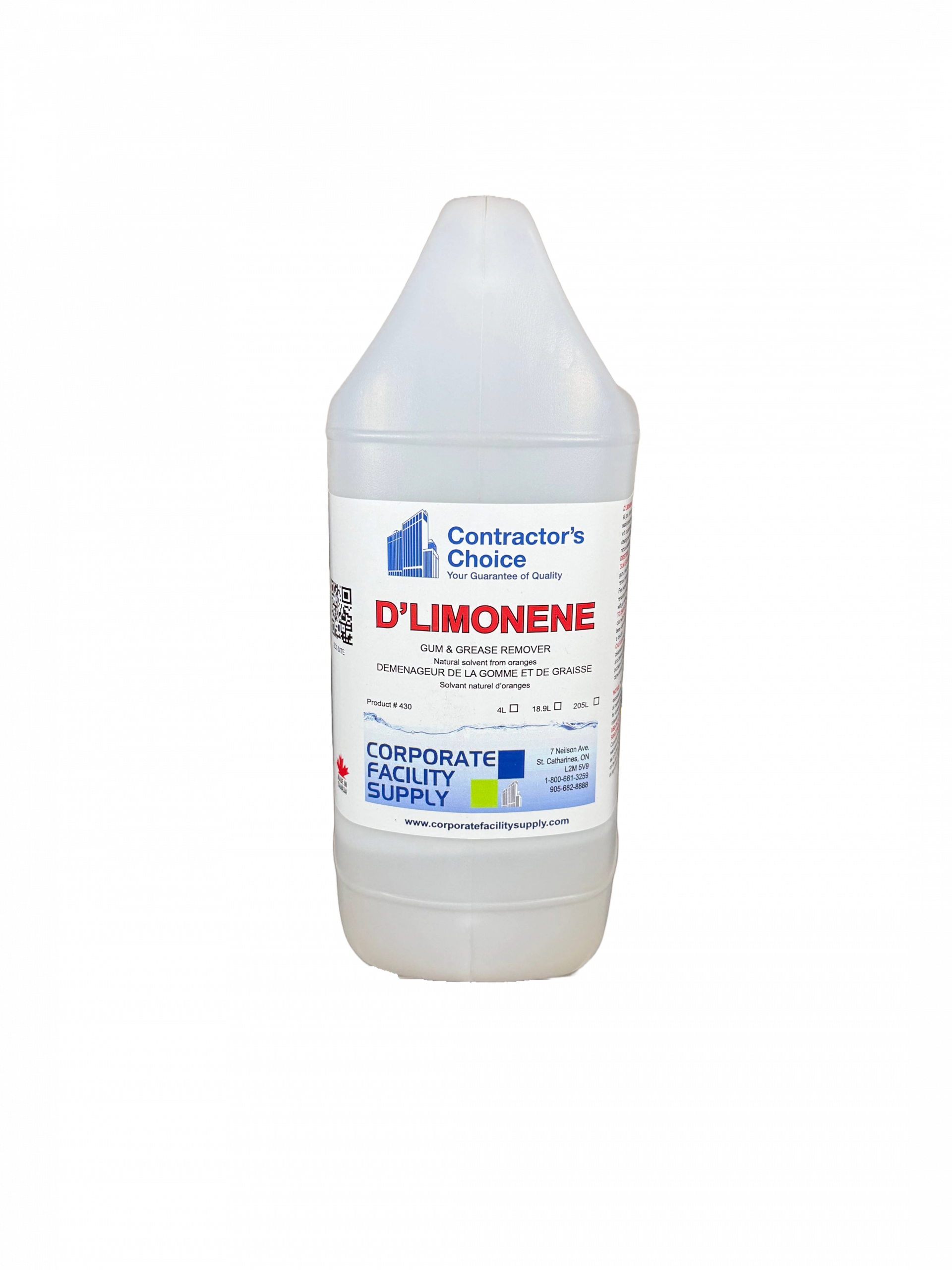 D’Limonene is a highly effective natural solvent derived from citrus oils, ideal for removing gum, grease, adhesives, and heavy residues from hard surfaces. It delivers strong cleaning power with a fresh orange aroma but must be handled with care, as it is flammable, may irritate skin and eyes, and is toxic to aquatic environments. Biodegradable and naturally sourced, it should be stored away from heat and open flames, used in well-ventilated areas, and always applied with proper protective equipment.