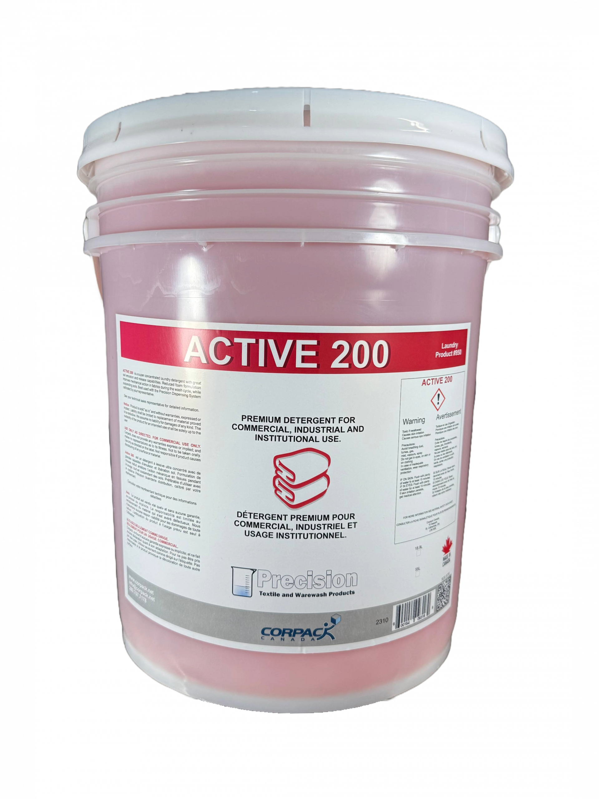 Active 200 is a concentrated red liquid detergent formulated for professional laundry applications. It combines ethoxylated alcohols, enzymes, and optical brighteners to provide powerful cleaning performance, remove stubborn stains, and preserve fabric brightness over time. The detergent dissolves easily in water and works effectively in both hot and cold wash cycles, making it suitable for institutional and commercial laundry operations.
